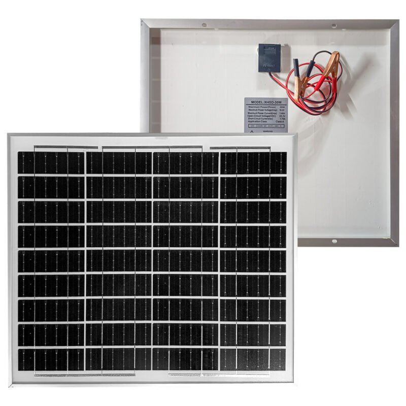 Panel Solar 30w 12v Monocristalino Con Pinzas Batería 18v Negro 22.32v