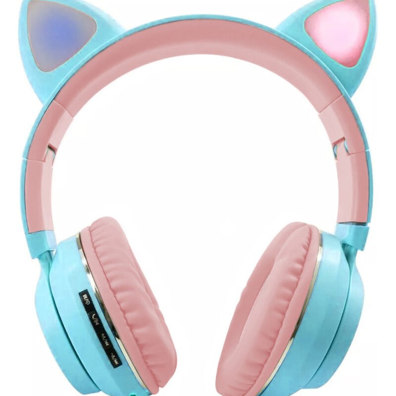 Auriculares Inalámbricos Gatito Gato Gaming Led Knup Celeste