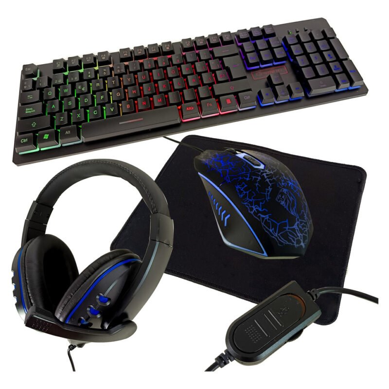 Combo Kit Gamer Teclado Mouse Pad Y Auriculares Rgb Negro Negro