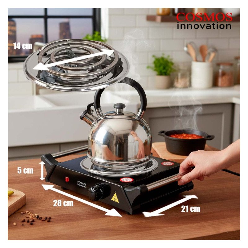 El Anafe Cocina Cocinilla Eléctrico 1000w de la marca Cosmos es la solución ideal para quienes buscan eficiencia y funcionalidad en la cocina. Con un diseño compacto y elegante en color negro, este anafe de pie cuenta con una hornalla que permite preparar tus platillos favoritos de manera rápida y sencilla. Su superficie de acero inoxidable no solo garantiza durabilidad, sino que también facilita la limpieza después de cada uso.