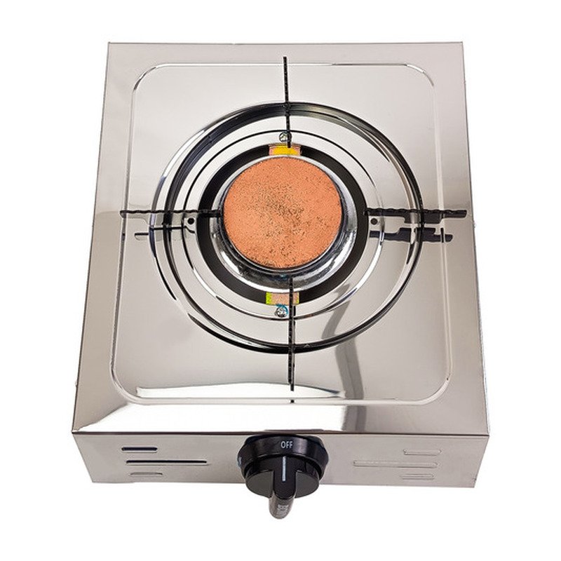 Su única hornalla permite un control preciso de la temperatura, ideal para preparar desde platos sencillos hasta recetas más elaboradas. El encendido manual y las perillas de control garantizan un uso intuitivo, mientras que la traba de seguridad proporciona tranquilidad durante su funcionamiento.