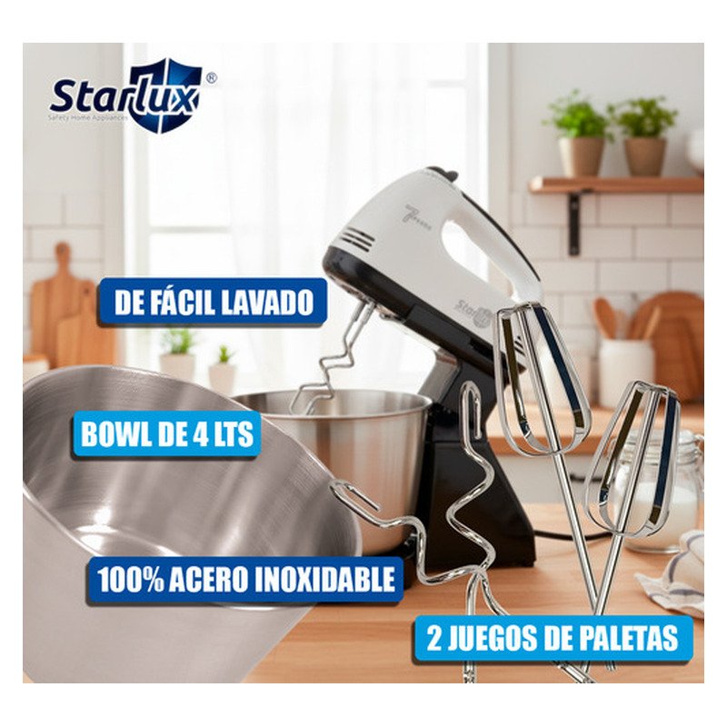 La marca Starlux es reconocida por su compromiso con la durabilidad y el rendimiento, lo que garantiza que esta batidora será un aliado en la cocina por mucho tiempo. Ya sea que estés horneando un pastel, preparando pan o simplemente mezclando ingredientes, esta batidora se convertirá en un elemento esencial en tu hogar.