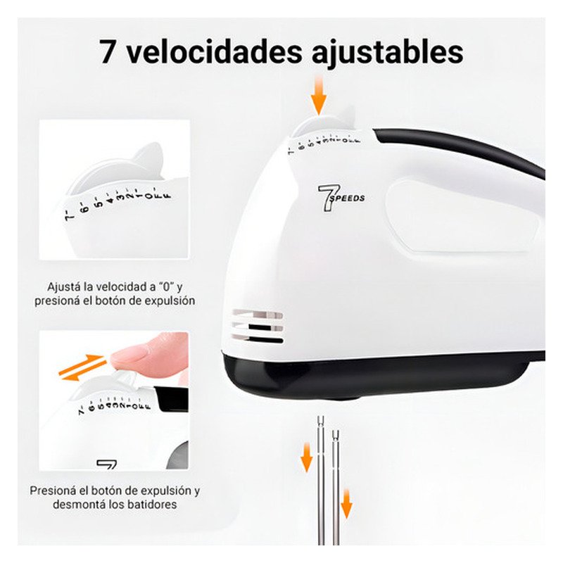La batidora de mano Scarlett es el aliado perfecto para tu cocina, ya que cuenta con 180W de potencia y 7 velocidades que se ajustan a tus necesidades. Está fabricada con materiales de alta calidad como el ABS y acero inoxidable, además con su botón de expulsión de varillas te facilita cambiar los accesorios y limpiar la batidora de manera rápida. Gracias a su potente motor que garantiza un óptimo rendimiento en la mezcla de ingredientes obtendrás deliciosas preparaciones de forma sencilla.