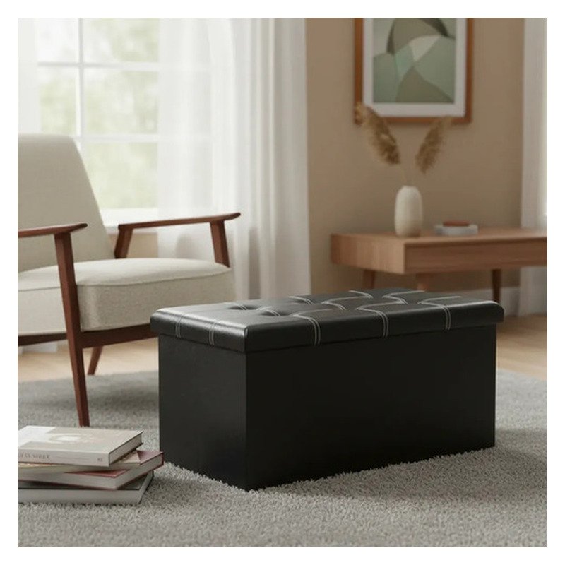 Baúl Banqueta Puff Organizador Living Comedor Dormitorio Negro Banqueta Plegable
