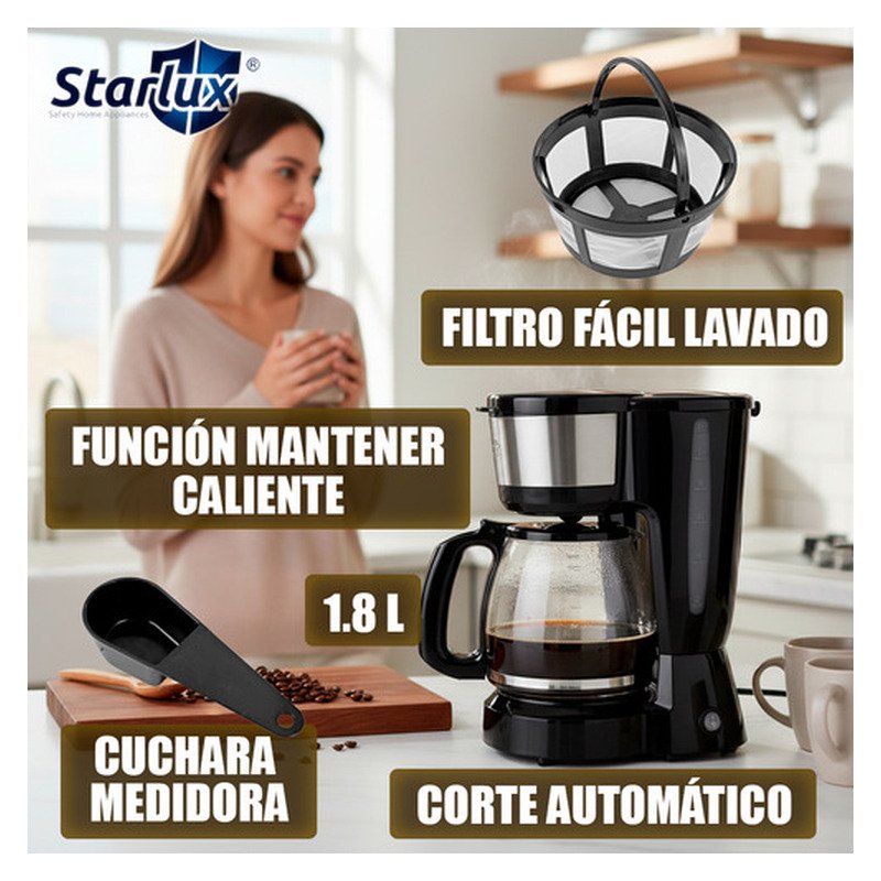 Cafetera Goteo Filtro 900w Starlux 1,8 Litros 12 Tazas Negro