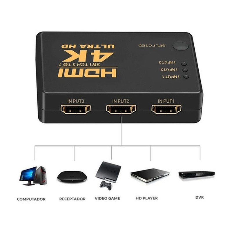 Switch Hdmi 3 Puertos 1080p Uhd 4k Con Control Remoto