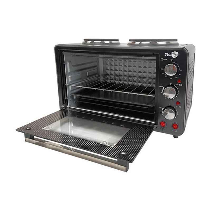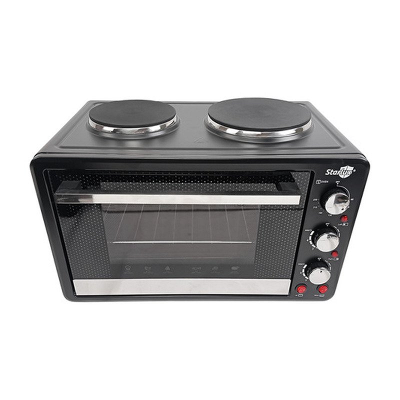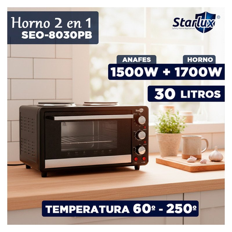 Horno 2 En 1 Eléctrico Doble Anafe Plato Liso Starlux 30l Negro