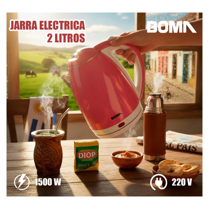 Jarra Caldera Eléctrica 2 Litros Boma 1500w Bm-1009 Rosa
