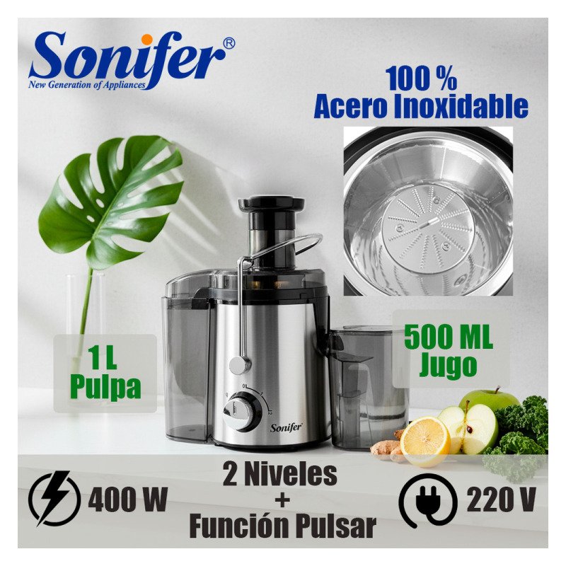 Juguera Extractor Eléctrica 400w 1,5 Litros 2 Velocidades Plateado