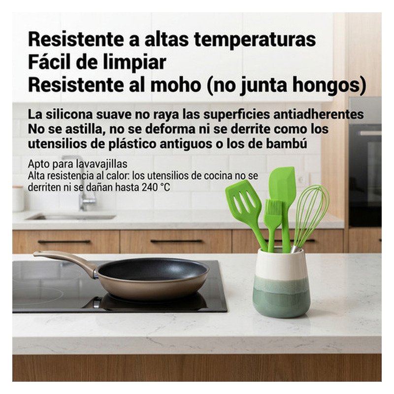 El Kit Set 5 Piezas Utensillos Cocina Silicona es el complemento perfecto para tu cocina. Con un diseño moderno y funcional, este set incluye 5 utensilios de cocina fabricados con silicona de alta calidad y madera, en un hermoso color rosa. Estos utensilios son ideales para cocinar de manera segura y cómoda, ya que la silicona evita que se rayen tus sartenes y ollas. Además, son fáciles de limpiar y suaves al tacto. Con este kit, podrás preparar tus platos favoritos con estilo y elegancia. No esperes más y adquiere este increíble set de utensilios de cocina.