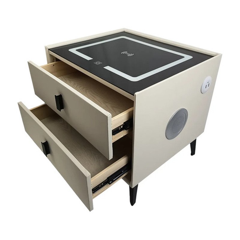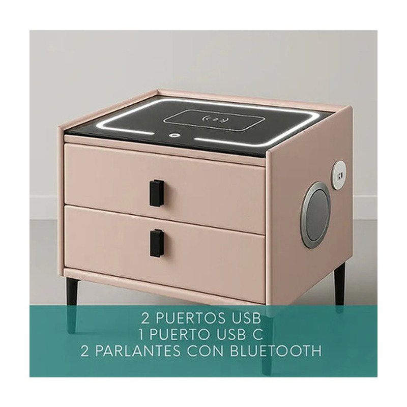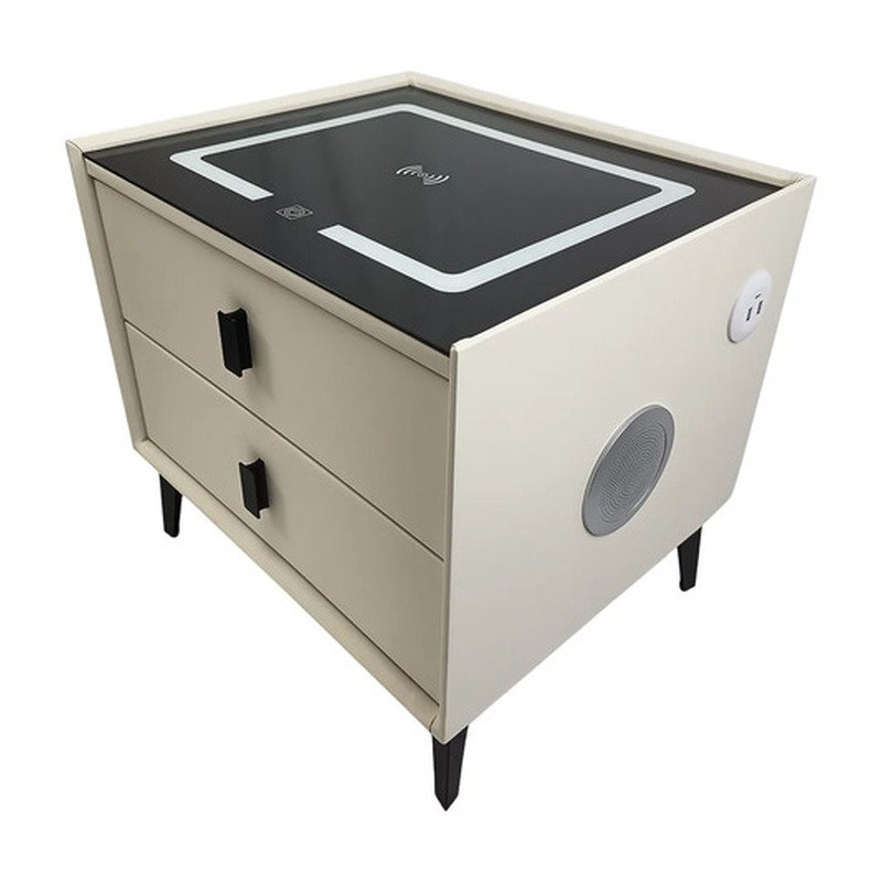 Mesa Mesita De Luz Smart Parlante Luz Led Carga Inalámbrica Mate Beige