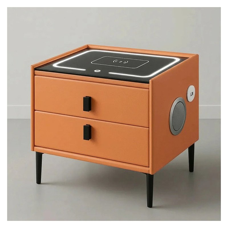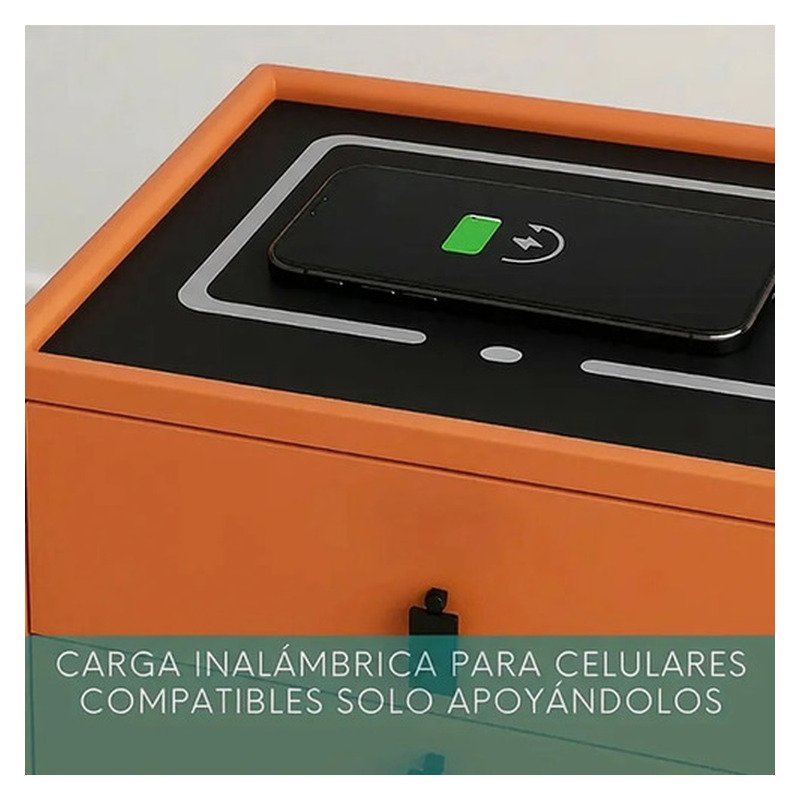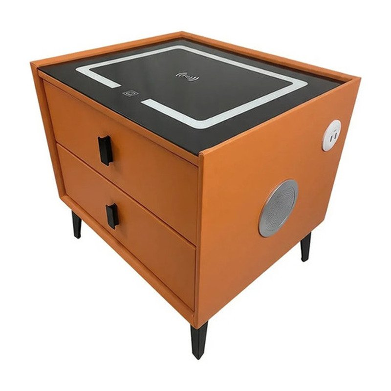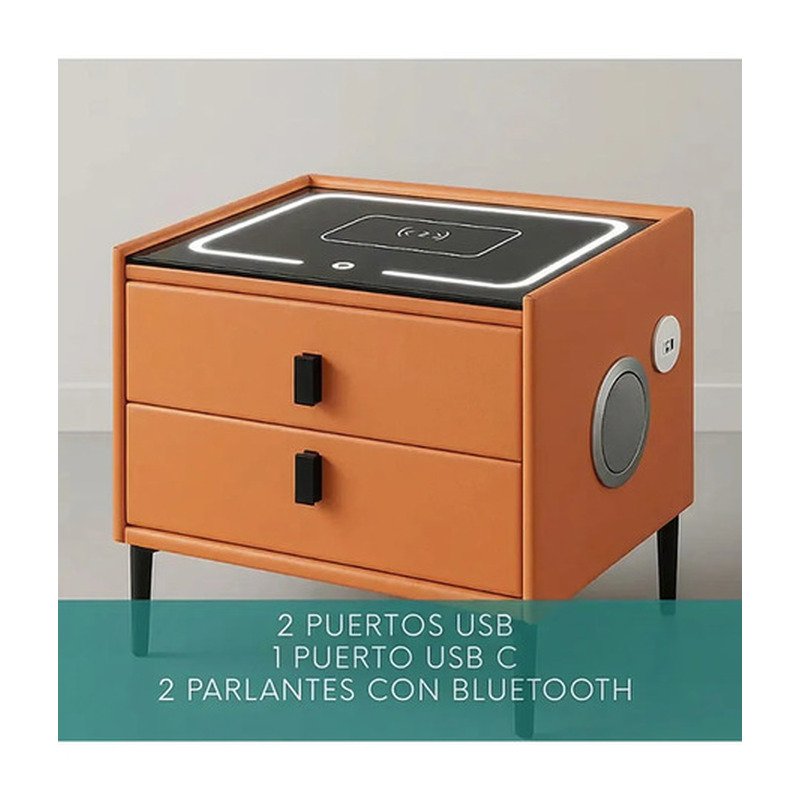 Mesa Mesita De Luz Smart Parlante Luz Led Carga Inalámbrica Mate Naranja