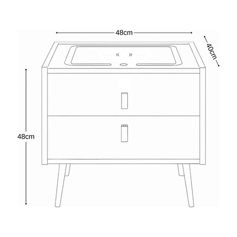 Con unas dimensiones de 48 cm de altura, 48 cm de ancho y 40 cm de profundidad, esta mesa es compacta y práctica. Dispone de dos cajones con correderas de metal, ofreciendo un amplio espacio de almacenamiento para tus objetos personales. Además, su sistema de carga inalámbrica y parlante integrado la convierte en un elemento multifuncional que optimiza tu experiencia diaria.
