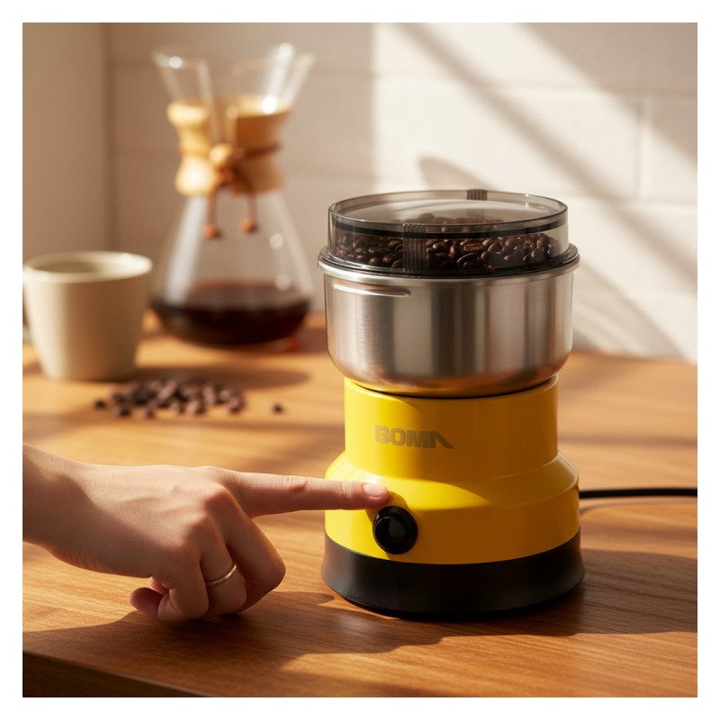 El molinillo eléctrico de café Boma BM-662 es la herramienta ideal para los amantes del café que buscan frescura y sabor en cada taza. Con una capacidad de 0,15 kg y una potencia de 150 W, este molinillo permite triturar granos de café y semillas de manera eficiente, asegurando un molido uniforme que resalta los aromas y sabores de tus bebidas favoritas.