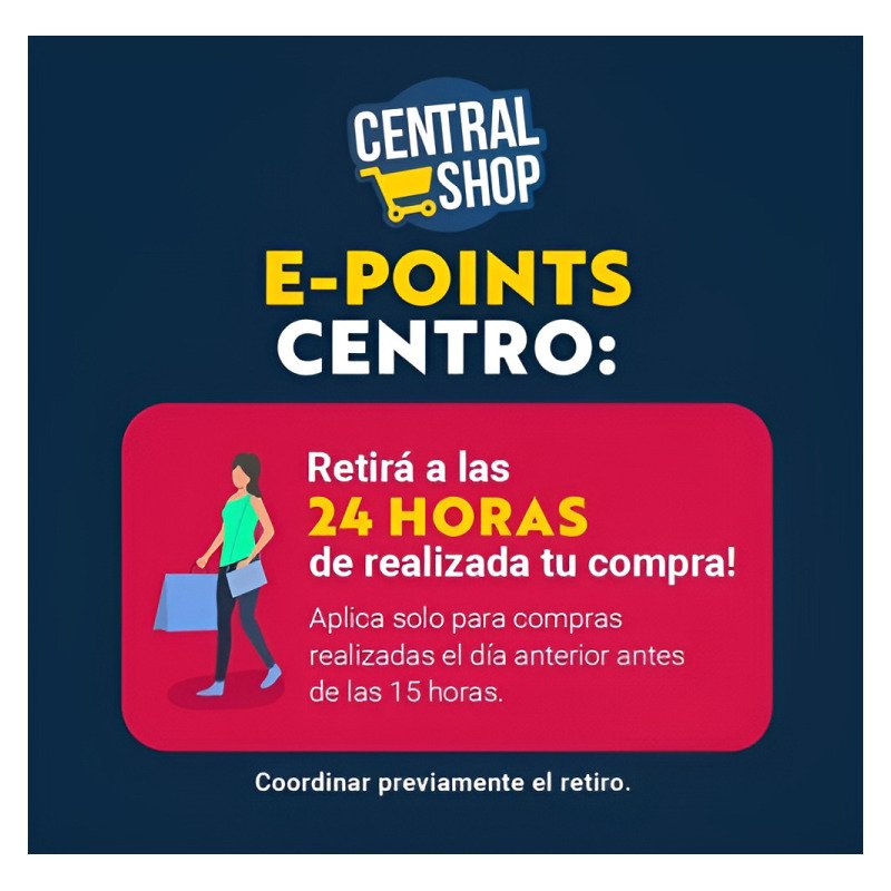 Retira tu compra en cualquiera de nuestro pick up SIN COSTO a las 24 horas con previa coordinación. Aplica solo a compras realizadas y pagas el dia anterior antes de las 15 horas.