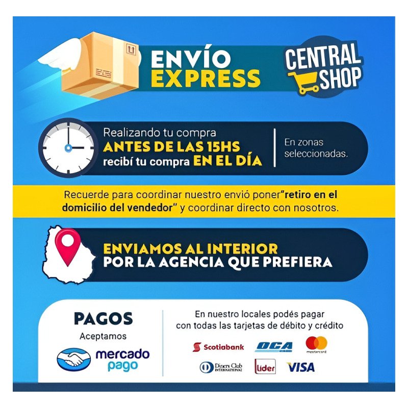 Envíos express dentro Montevideo – Recibí tu producto en el día realizando tu compra antes de las 18:00 horas en zonas seleccionadas.