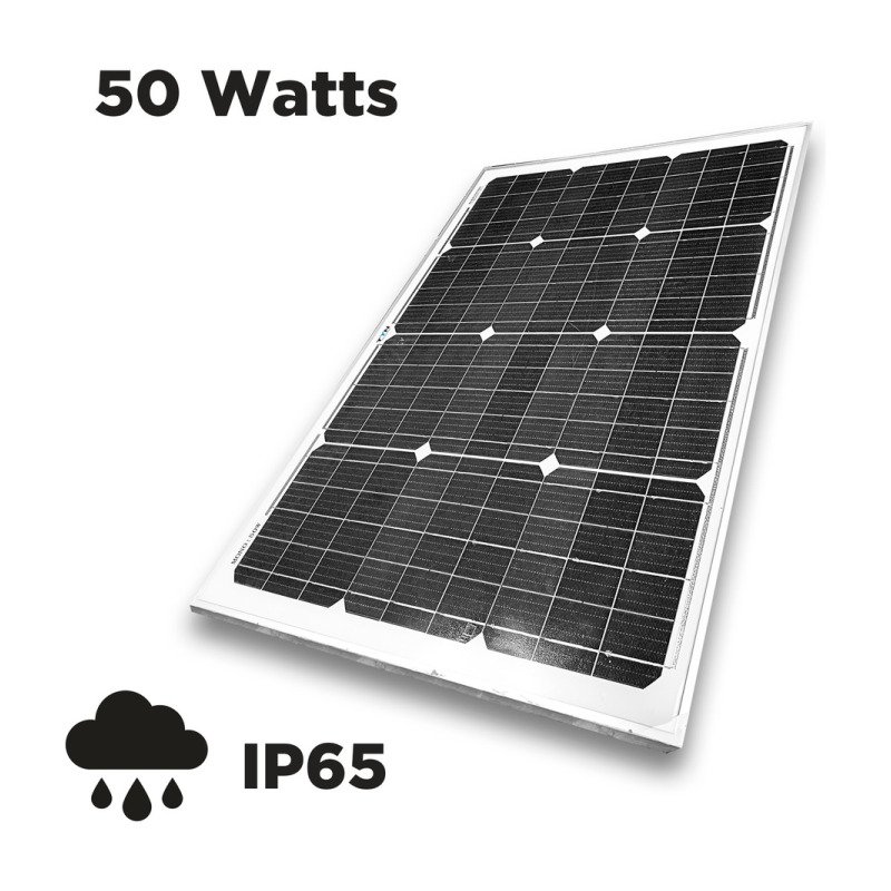 PANEL SOLAR 50W 12V MONOCRISTALINO CON PINZAS BATERÍA NEGRO