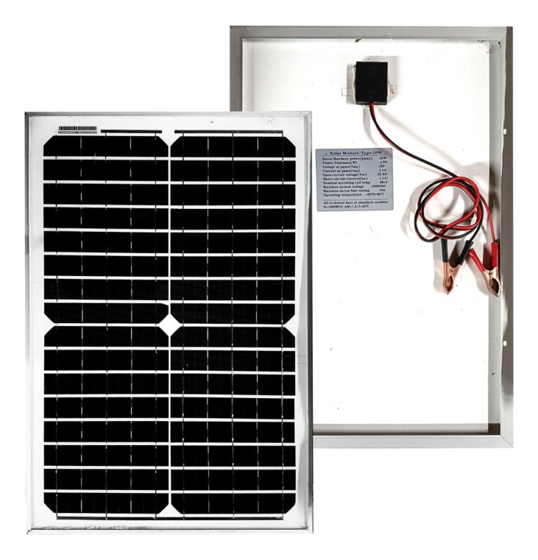 Panel Solar 20w 12v Monocristalino Con Pinzas Batería Negro 18.2v 22.2v