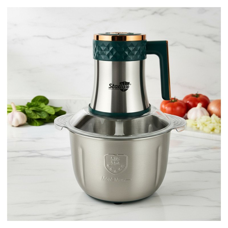 La procesadora picadora eléctrica Starlux SL-28047G es la herramienta ideal para quienes buscan hacer más eficiente su tiempo en la cocina. Con una potente capacidad de 500 W y un amplio vaso procesador de 5 litros, este aparato es perfecto para picar carne, verduras y otros alimentos con facilidad. Su diseño ergonómico permites un uso correcto y cómodo, convirtiéndola en un aliado indispensable para cualquier amante de la cocina.