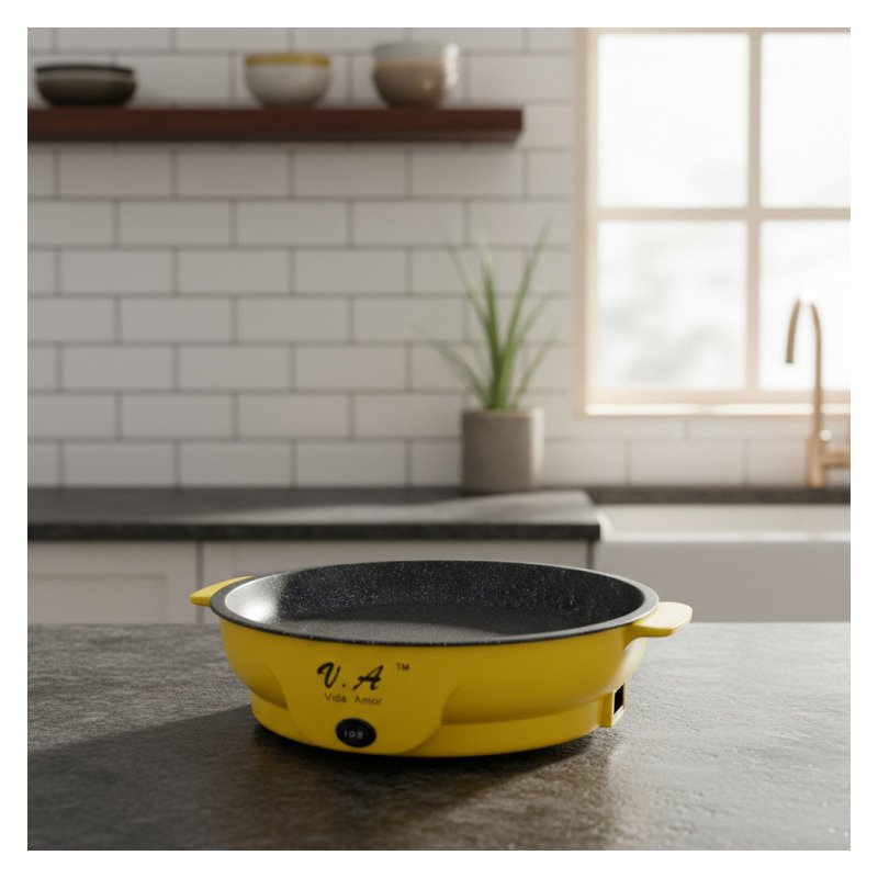 Sartén Eléctrico Premium Redonda 26 Cm Antiadherente Amarillo