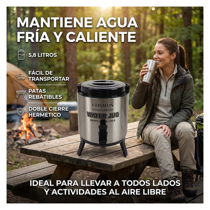 Termo Dispensador De Agua Portatil 5.8 Litros Frío Calor Gris