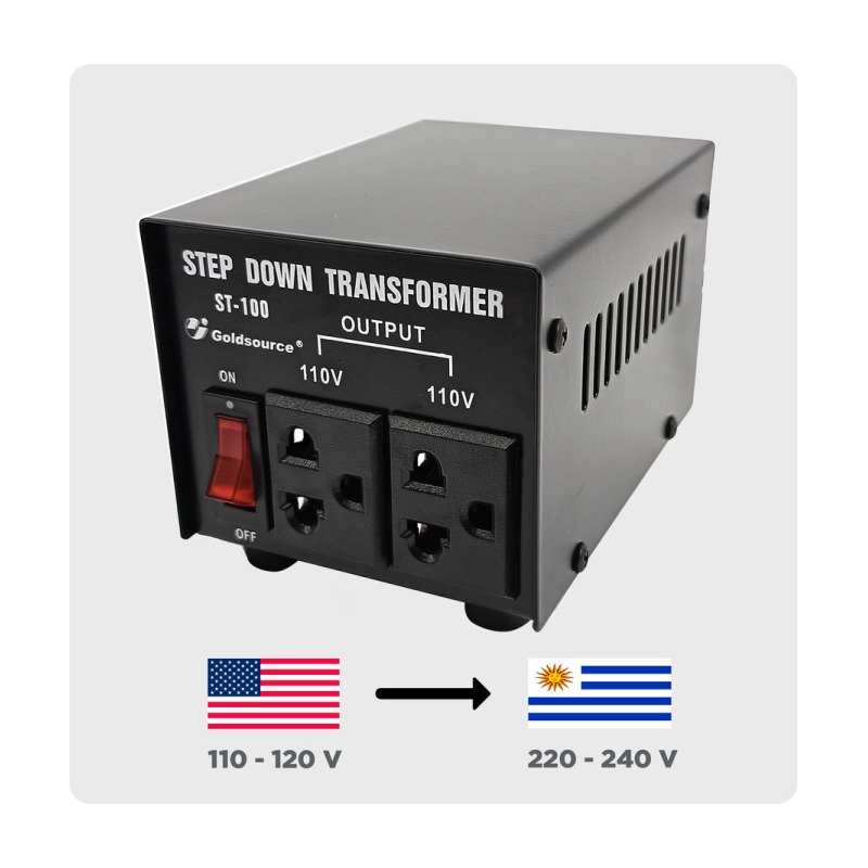Transformador 220v A 110v Hasta 100w 2 Enchufes Metálico